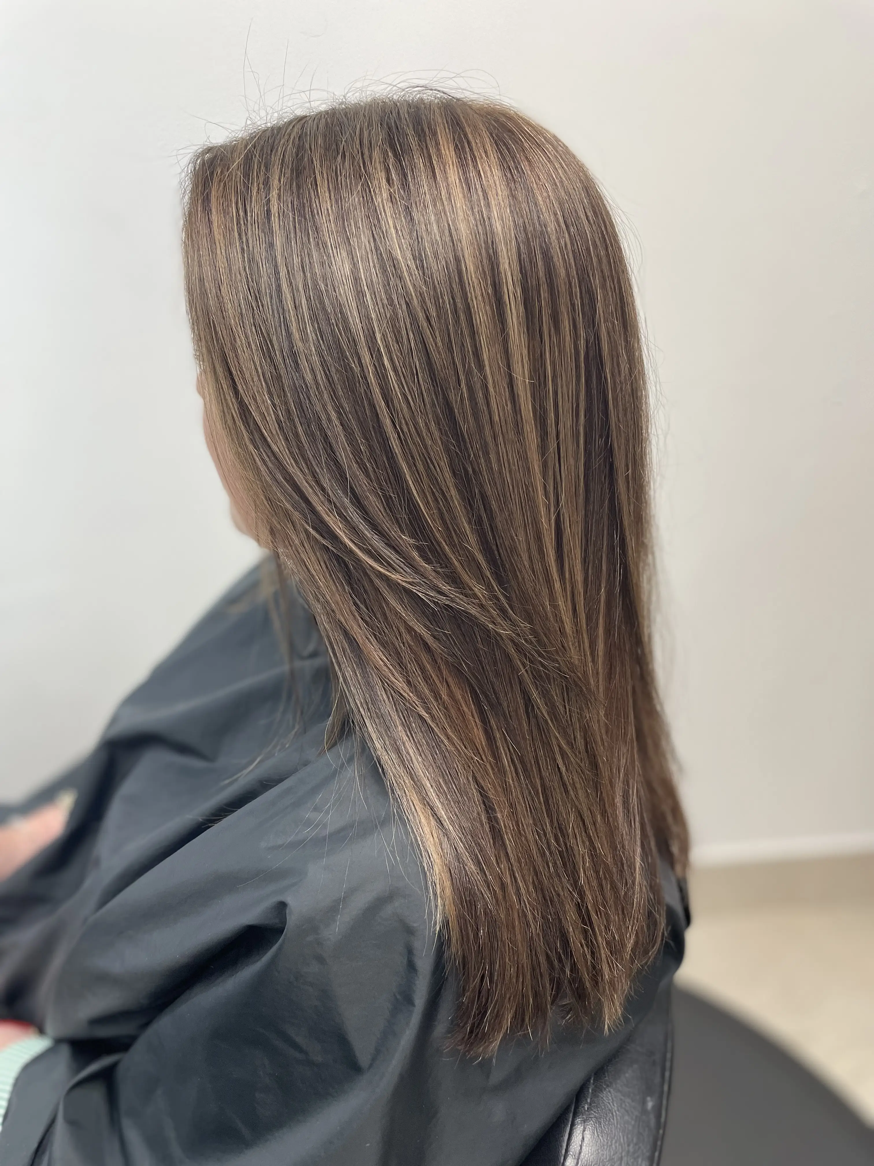 A highlight entails adding a lighter dimension to your hair color. Foils are customized strategically to give you dimension and texture. All color services include deep conditioning treatment & styling!
